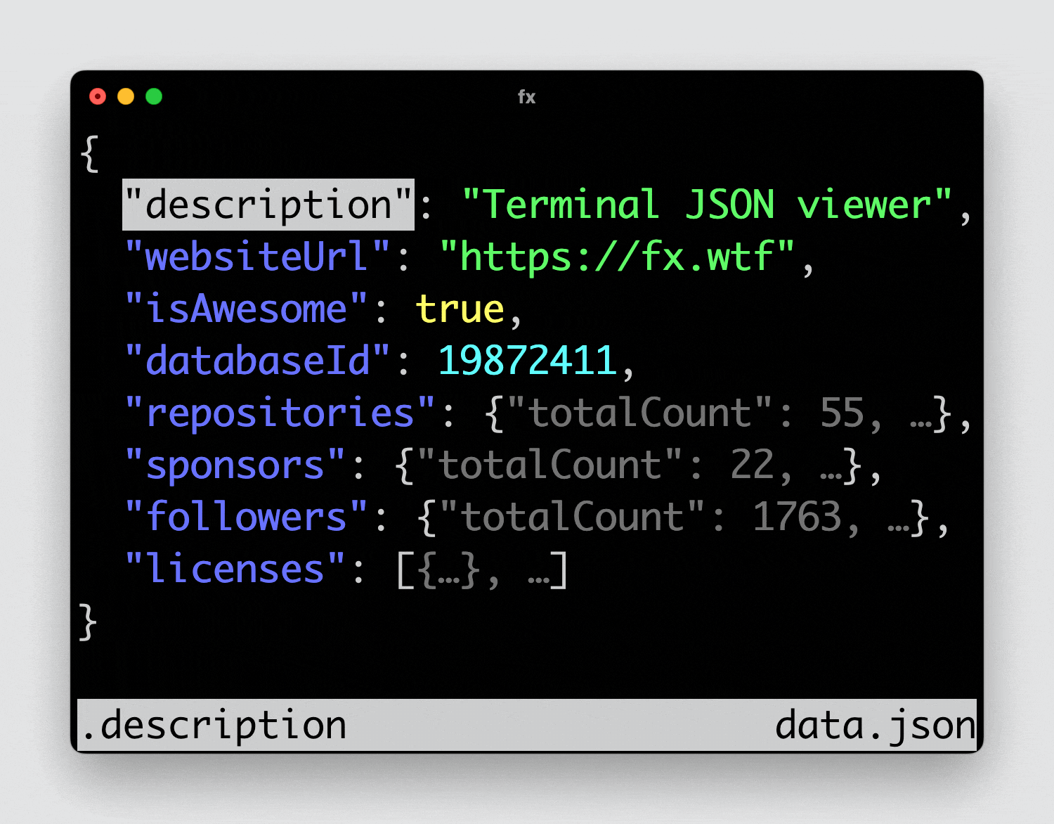 一个可以在终端优雅操作 JSON 的小工具: fx: