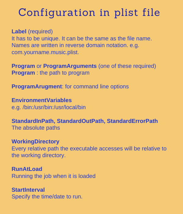 launchd 是苹果的一个开源项目,提供的能力多于 cron,但不同于 cron,launchd 使用 plist 描述任务项: