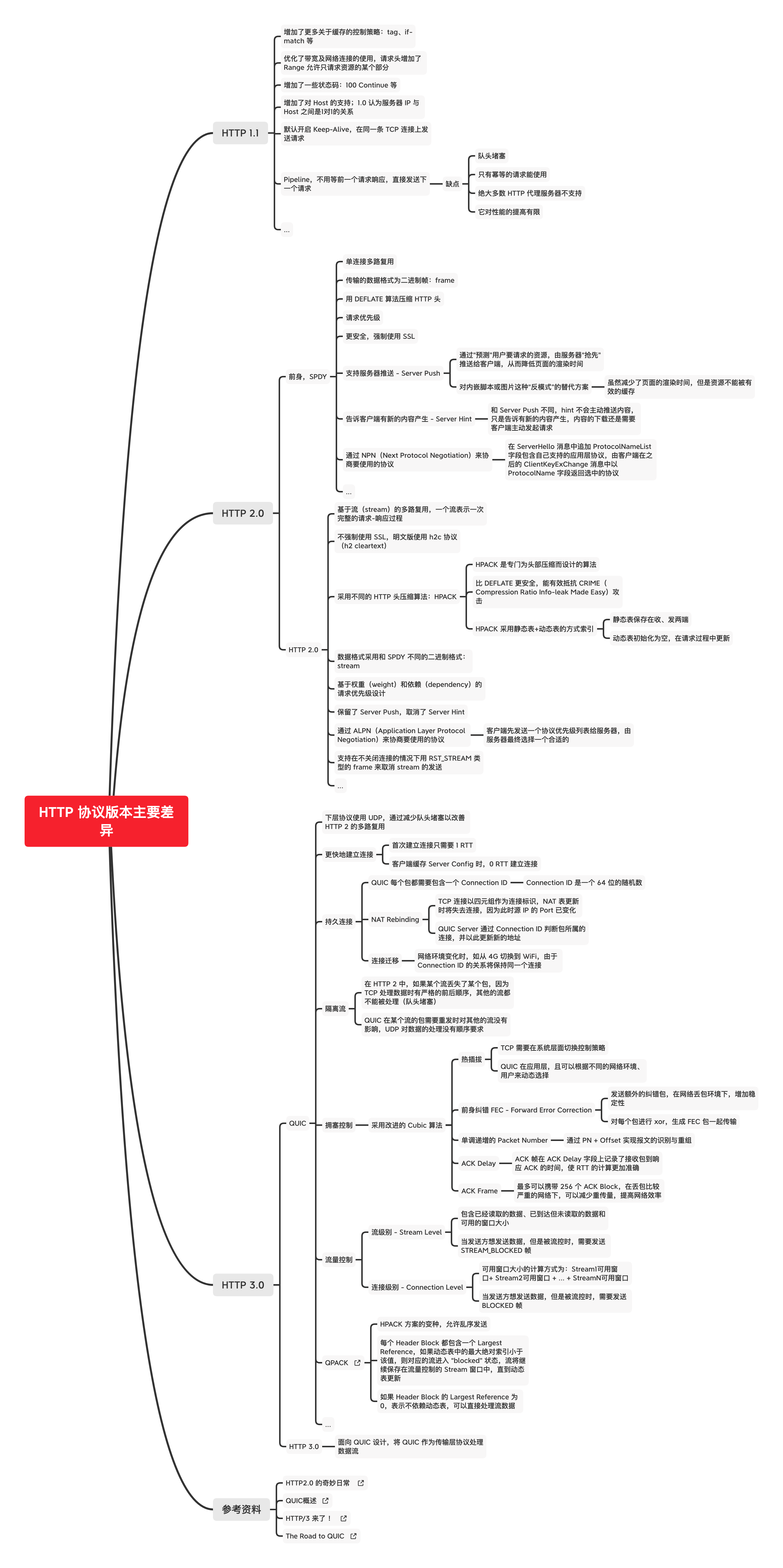 前段时间做了一张思维导图,是关于 HTTP 各版本之间主要差异的,做这个的目的还是以梳理自己的知识为主,并借此机会了解下其中的算法: